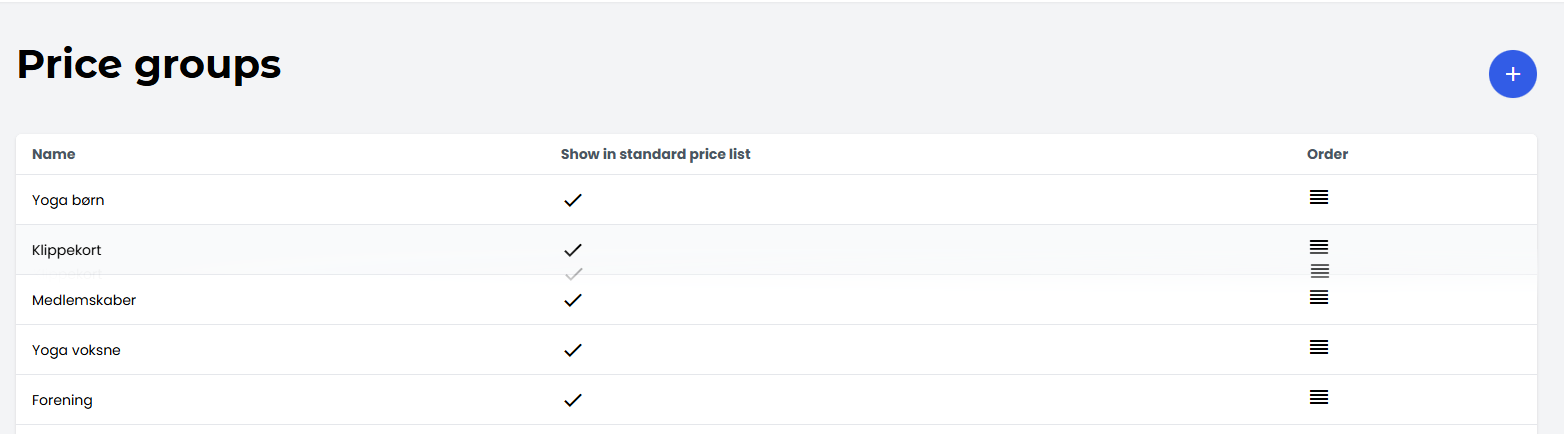 You can easily change the order of both prices and price groups as they are displayed in your price widget and in the customer view under Prices.